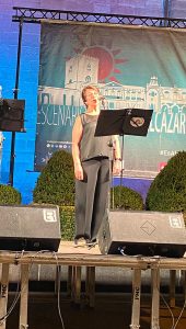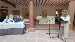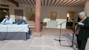 Después del recitado de 24 de los componentes del Grupo Literario, Magdalena tomó la palabra para explicarnos quién es, cómo escribe, y porqué lo hace, acompañando sus palabras con el recitado de alguno de sus poemas.